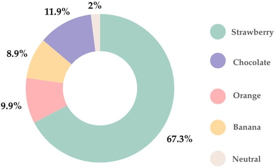 In regard to flavor, the favorite was strawberry (67.3%), followed by chocolate (11.9%). Only 2% of parents indicated that their children preferred neutral flavor (