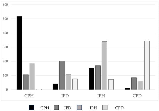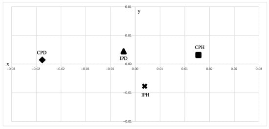 From these coordinates, a graph was created that represents the four groups (CPH, IPD, IPH, CPD) by their centroids in the space of the discriminant functions (see Figure 1).