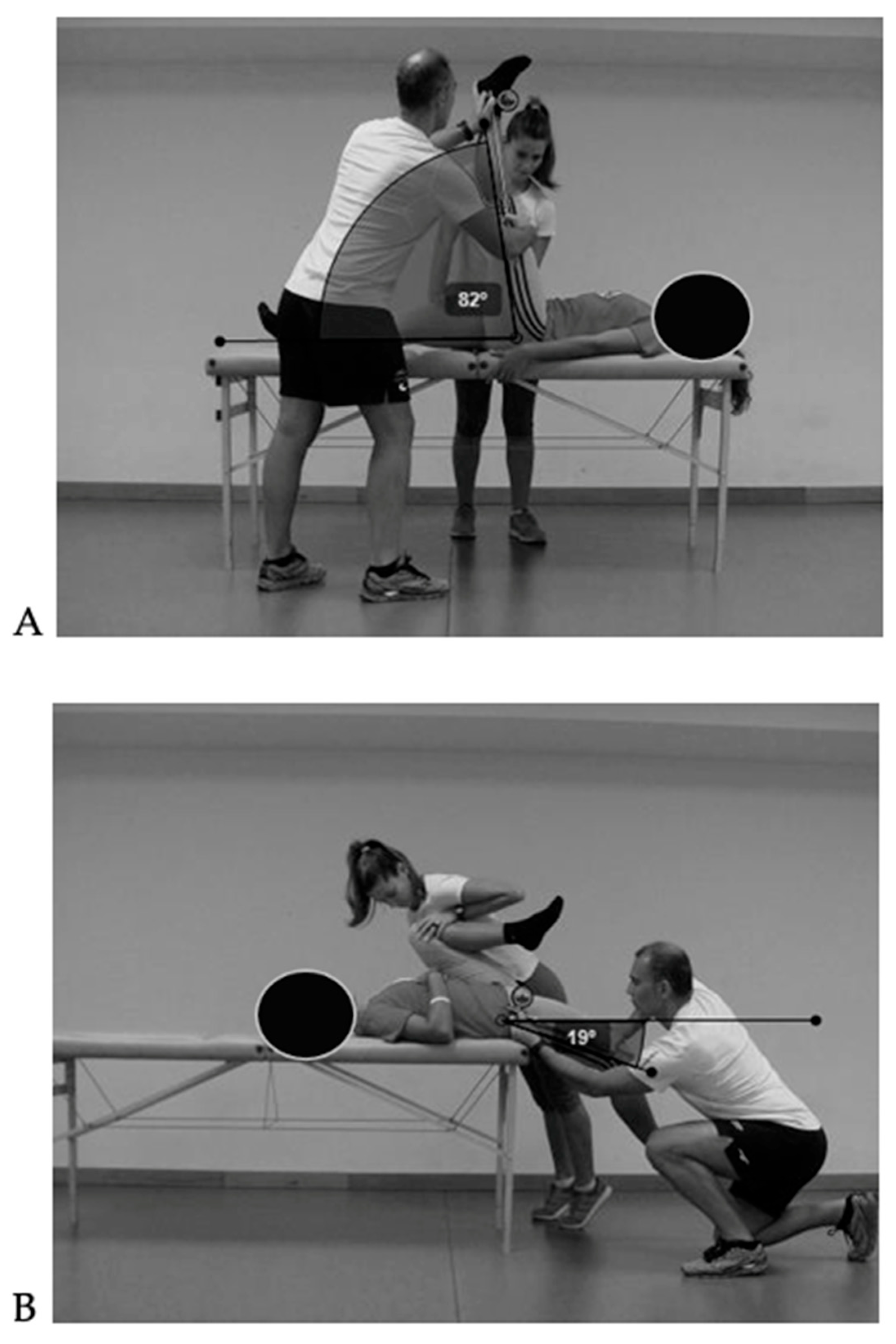 - Cejudo, A.; Sainz de Baranda, P.; Ayala, F.; De Ste Croix, M.; Santonja-Medina, F. Assessment of the Range of Movement of the Lower Limb in Sport: Advantages of the ROM-SPORT I Battery. Int. J. Environ. Res. Public Health 2020, 17, 7606. [Google Scholar] [CrossRef]