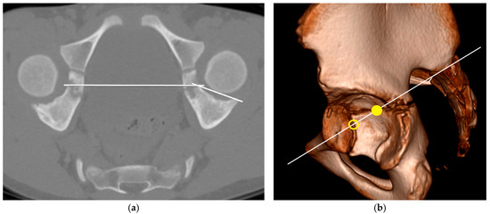 - Gose, S.; Sakai, T.; Shibata, T.; Murase, T.; Yoshikawa, H.; Sugamoto, K. Morphometric Analysis of Acetabular Dysplasia in Cerebral Palsy: Three-dimensional CT Study. J. Pediatr. Orthop. 2009, 29, 896–902. [Google Scholar] [CrossRef] [PubMed]