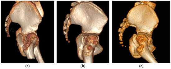 Cerebral palsy (CP) is a complex disorder that affects an individual’s ability to move due to spastic muscle contraction, stemming from brain-related issues during fetal or early infant stages [1,2,3]. Hip dislocation accompanied by acetabular dysplasia is a common finding in children with CP and a higher severity of motor dysfunction [4,5]. Non-ambulatory children present the highest incidence rates up to 90% [6]. In CP, femoral head subluxation is described as typically posterosuperior, aligning with acetabular deficiency [7]. Since most subluxations are described as posterosuperior (37%), there are still 29% anterior and 15% mid-superior or mixed [8]. It is known that major acetabular deficiency coincided with the direction of the subluxation or dislocation. Even mild cases of CP show posterior wall deficiency compared to normal controls, progressing to anterosuperior and superolateral quadrants with disease severity [7]. Therefore, a precise analysis of the acetabular deficiency and the correlating direction of subluxation or dislocation is necessary to allow accurate planning of the surgical treatment. Often, early hip reconstruction including pelvic osteotomy to restore acetabular shape and femoral corrective osteotomy is necessary to avoid pain, loss of functions and limitations of important basic functions [9,10]. The recurrence rates after reconstruction, however, are reported to be up to 23% [11] and the risk of perioperative morbidity is enormous with 63% [12].