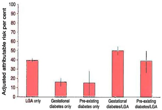 - Beta, J.; Khan, N.; Fiolna, M.; Khalil, A.; Ramadan, G.; Akolekar, R. Maternal and Neonatal Complications of Fetal Macrosomia: Cohort Study. Ultrasound Obstet. Gynecol. 2019, 54, 319–325. [Google Scholar] [CrossRef]