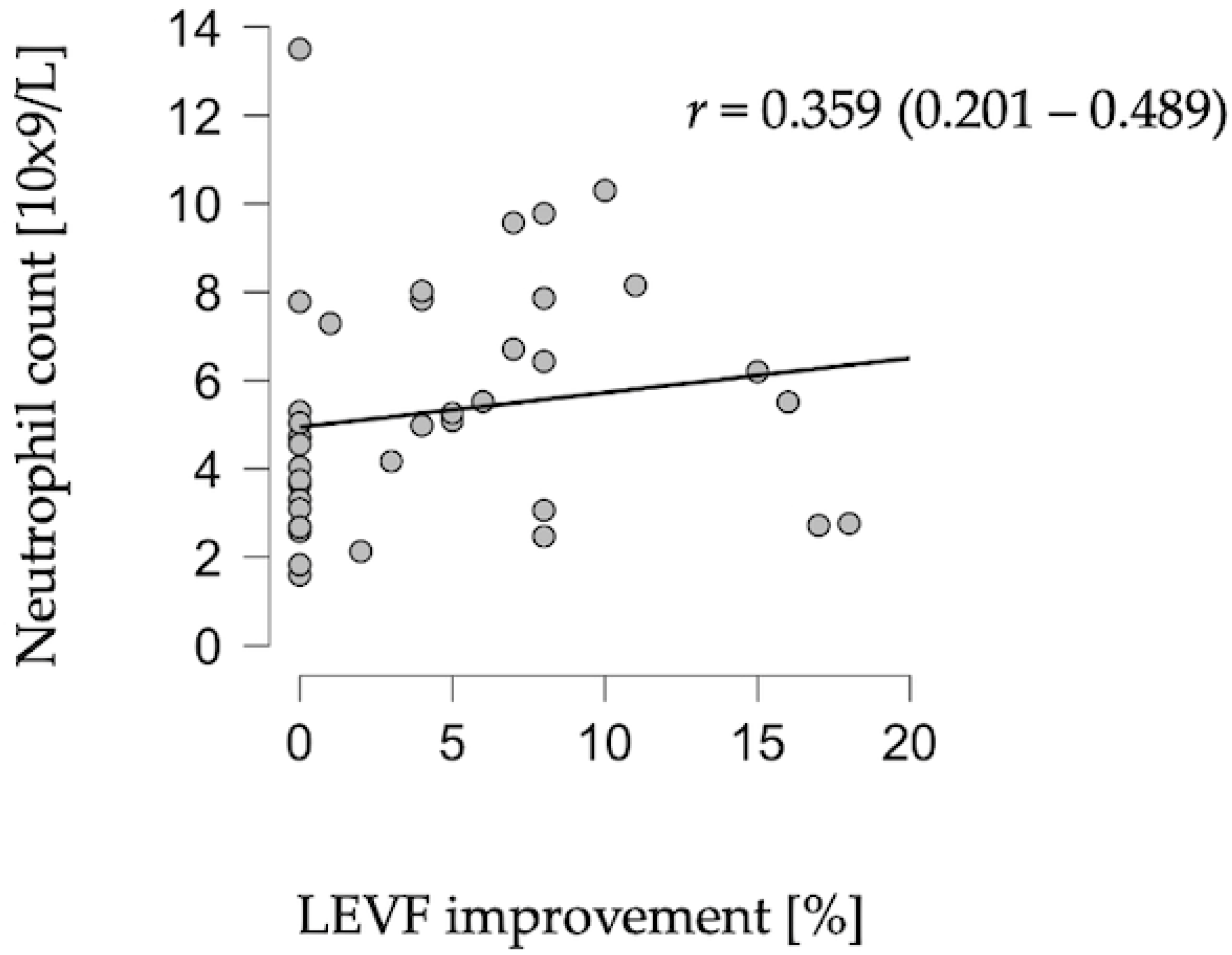 APA StyleRabiega, B., Wysocka, D., Urbanowicz, T., Olasińska-Wiśniewska, A., Jemielity, M., & Bobkowski, W. (2026). Relation Between Neutrophil Count and Left Ventricular Ejection Fraction Following Acute Myocarditis in Adolescents: A Preliminary Study. Children, 13(1), 40. https://doi.org/10.3390/children13010040