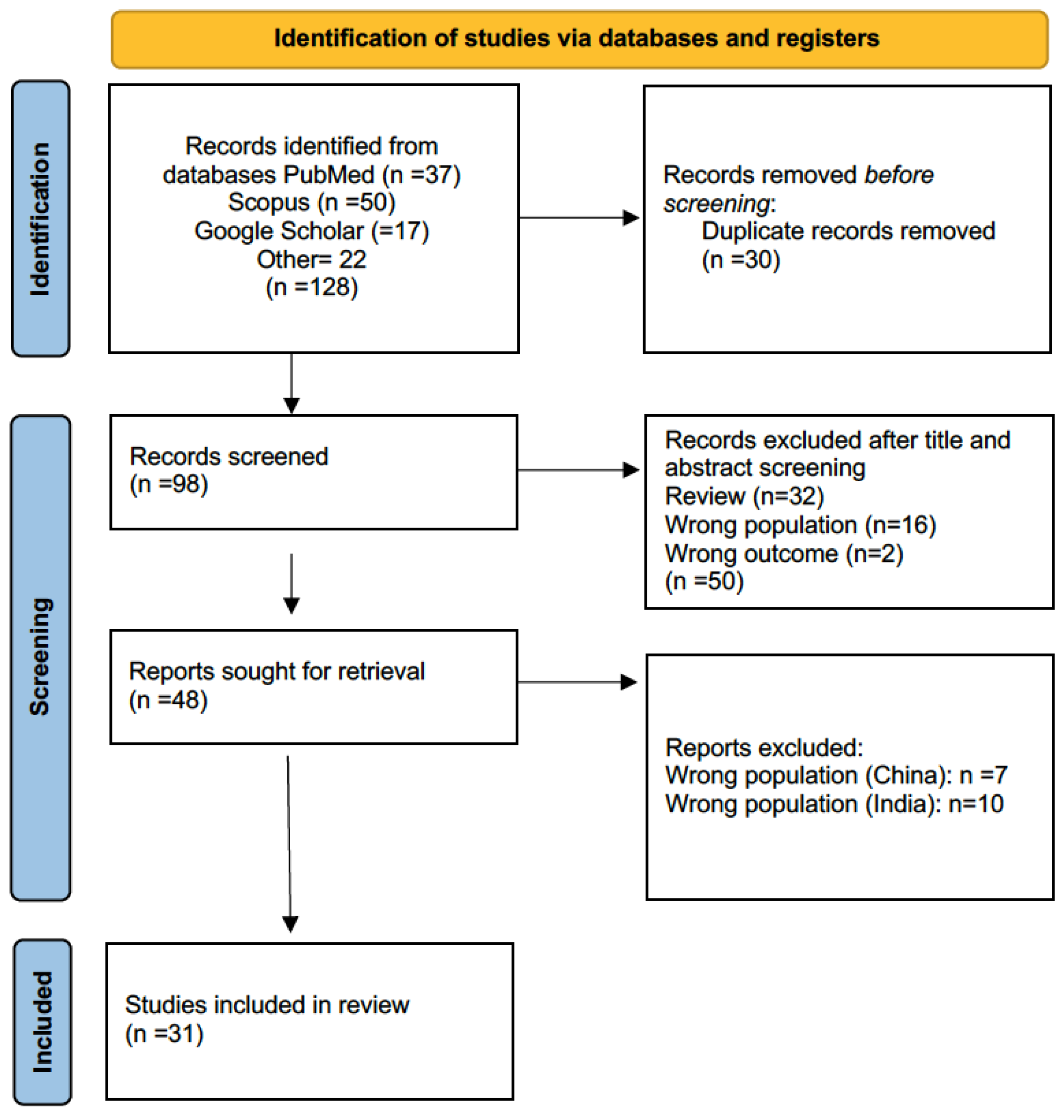 - As in our previous scoping reviews, some limitations might arise from the fact that available and probably significant screening data (for any state in question) are not reported in established impact factor sources and therefore cannot be utilized.