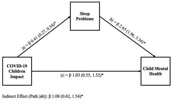3.3. The Role of Sleep in Mediating the Relationship of COVID-19 Child Impact on Child Mental Health