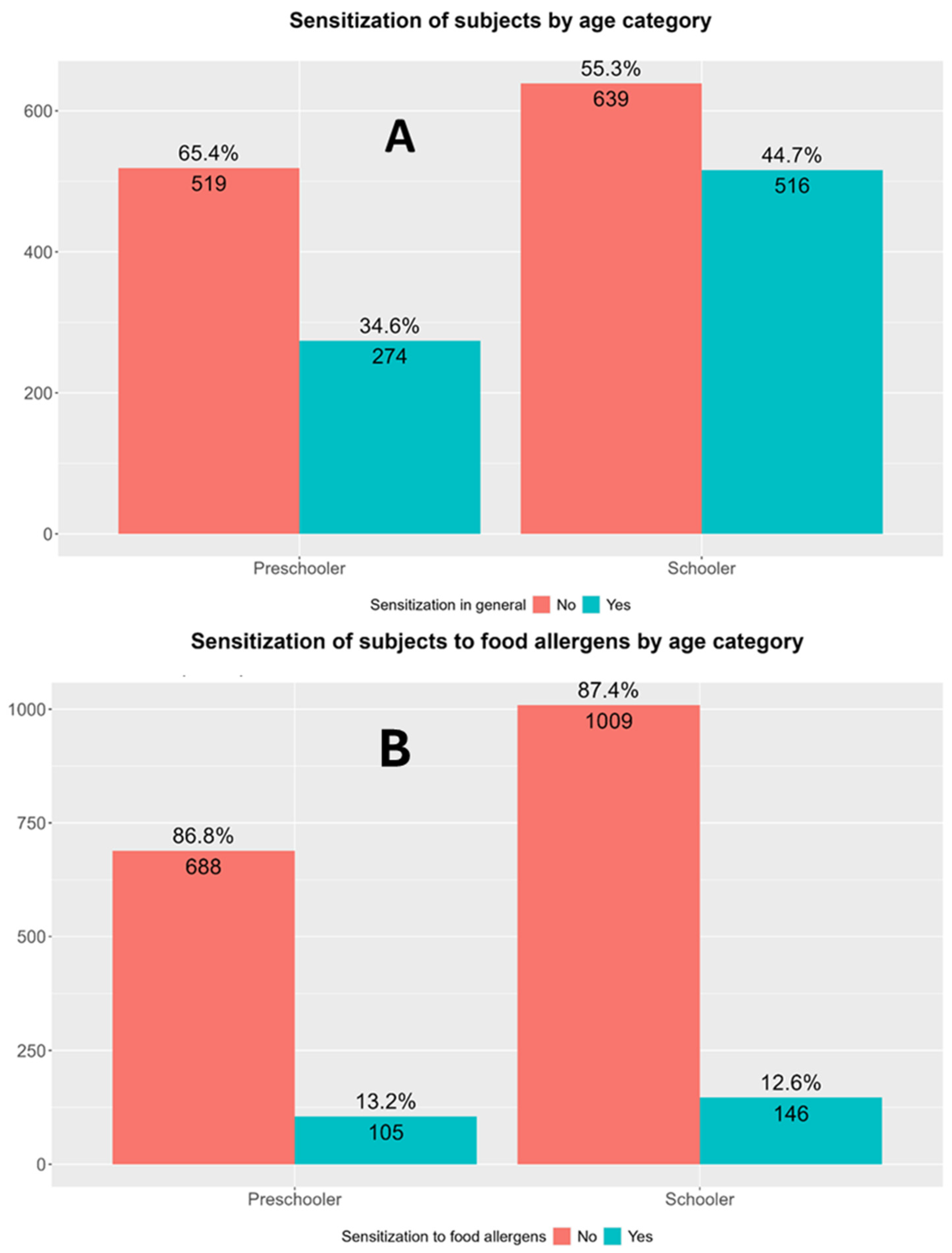 57]. However, when focusing solely on polysensitization rates to food allergens, these did not differ in the two age groups (5.9% in preschoolers and 5.6% in school-aged children;