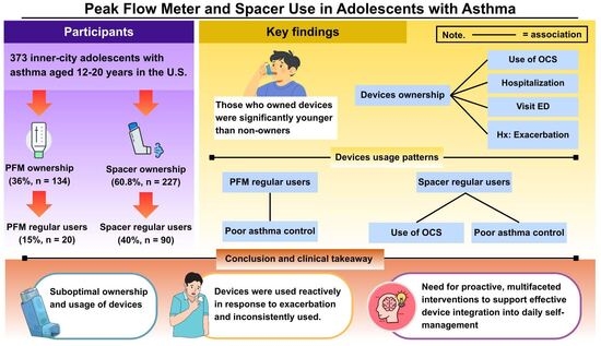 Chicago/Turabian StyleRhee, Hyekyun, and Nattasit Katchamat. 2026. "Peak Flow Meter and Spacer Use in Adolescents with Asthma: More than Just Ownership" Children 13, no. 2: 302. https://doi.org/10.3390/children13020302