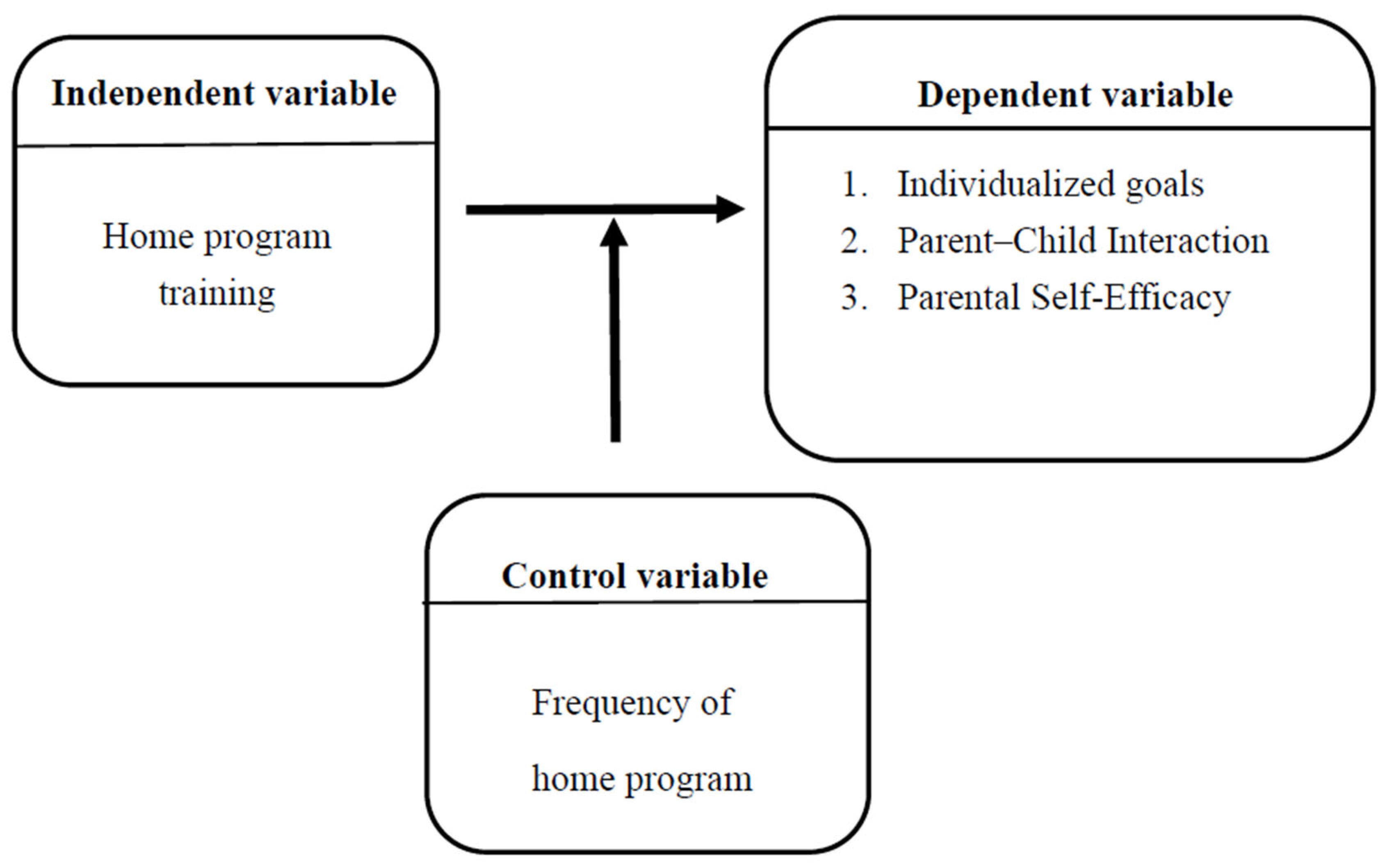 The dependent variables in this study were the individualized goals for the children, parent–child interaction, and parental self-efficacy. The current study investigated the changes in these dependent variables after the parents participated in the home program interventions for children with motor developmental delays.