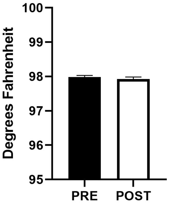 Comparison of axillary temperature before initiation and after completion of HFJV-KC (n = 88). PRE—Before initiation of HFJV-KC (infant in incubator). POST—after completion of HFJV-KC (infant returned to incubator).