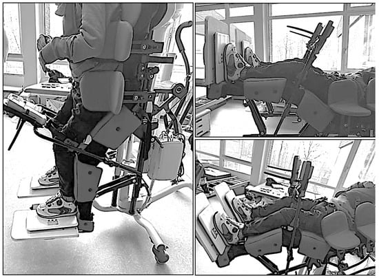 The system was then gradually verticalized to the predefined angle. The predefined experimental positions, including hip/knee flexion and verticalization angles, are detailed in Table 2. During verticalization, therapists continuously monitored joint alignment, muscle tone, involuntary movements, and participant comfort to avoid abrupt loading, instability, or excessive spastic responses.