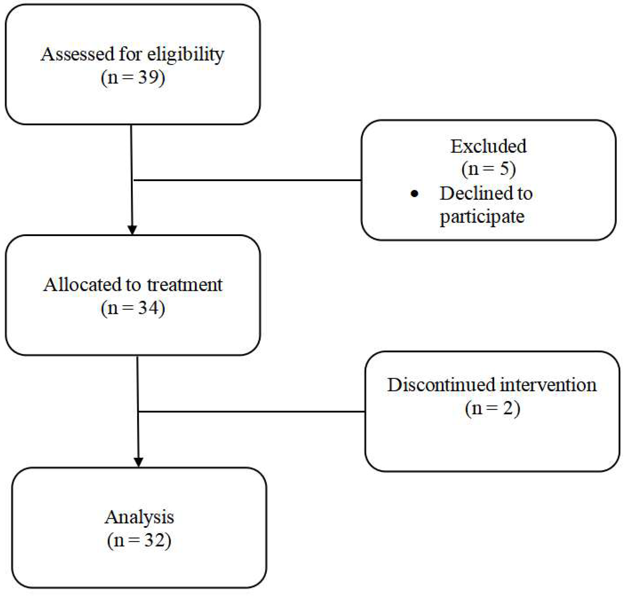 The 32 participants who completed the intervention were on average 40.09 ± 8.29 years of age and had 10.65 ± 3.66 years of education. Most participants were married (48.5%) or lived with their partner (21.2%). Average annual income was reported to be 32,390.00 ± 7312.81 U.S. dollars; however, only 12 participants reported income data and thus these numbers, which are only 28% of the median income for the geographical area and well below poverty level, may not represent the population [