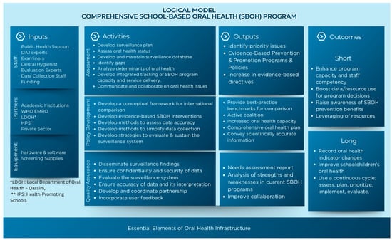 Proposed logic model for a comprehensive Saudi School-based oral health program (modified framework).