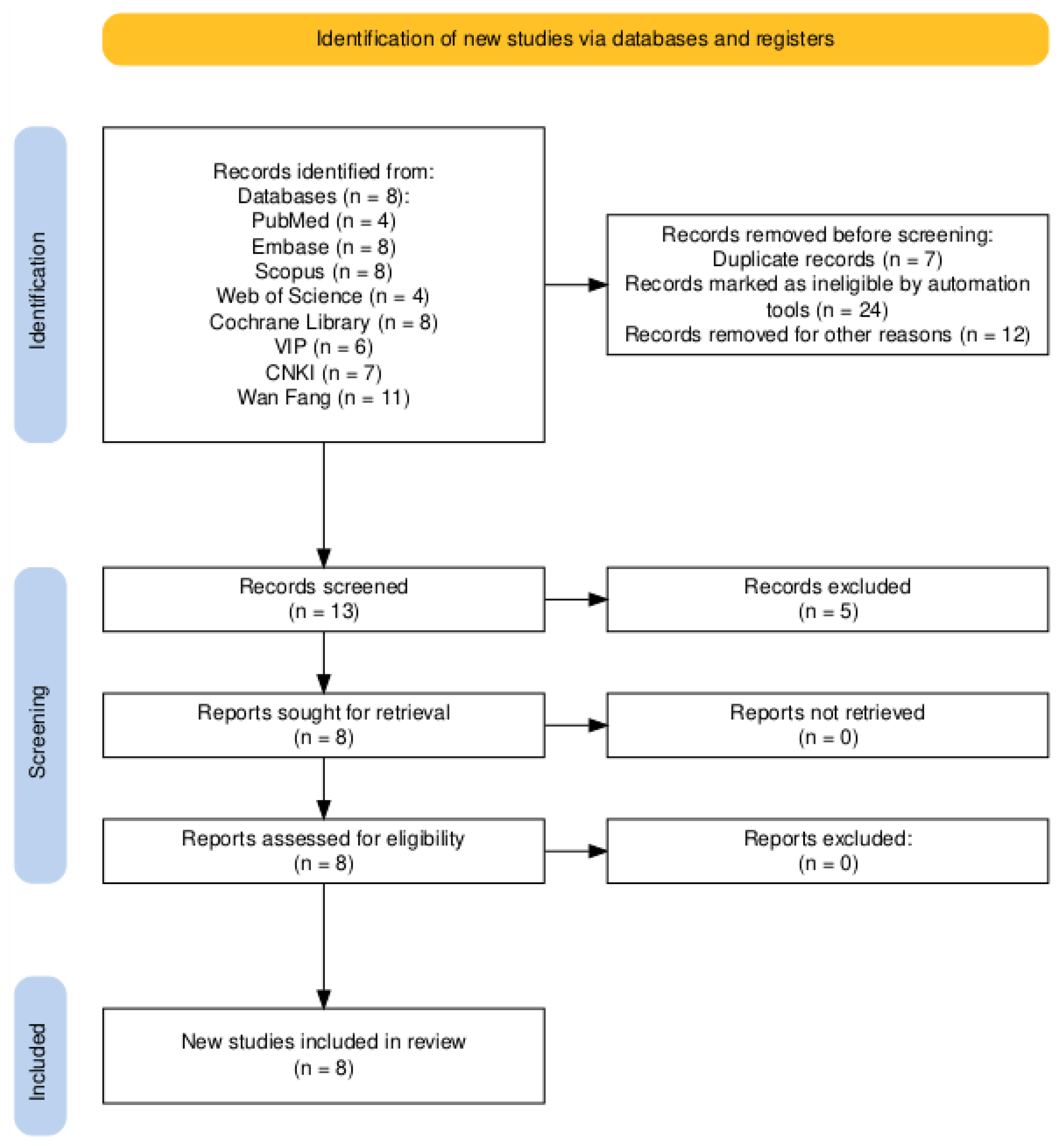 | Cochrane Library | (Shenqu Xiaoshi Oral Liquid): ti, ab, kw | 8 |