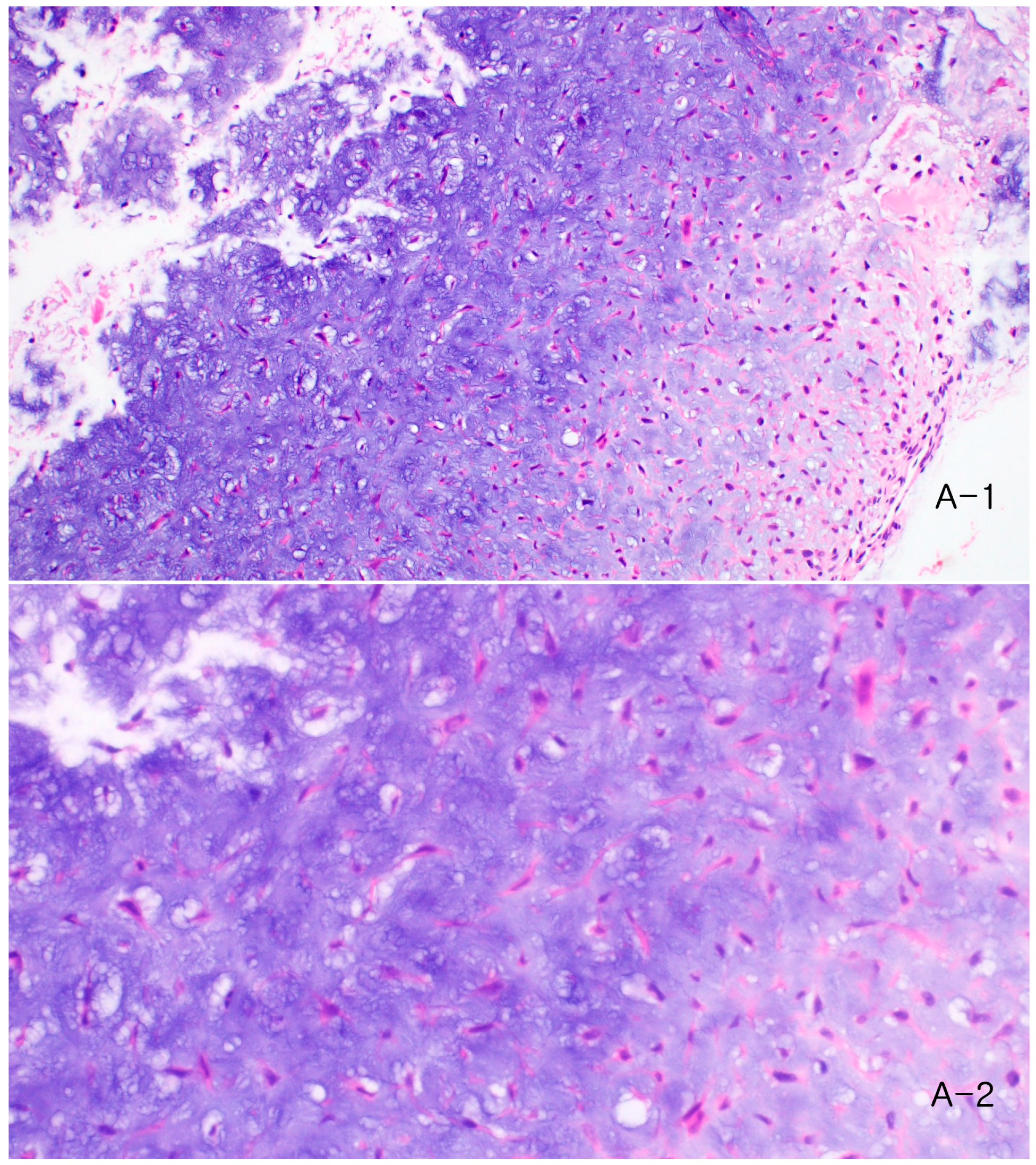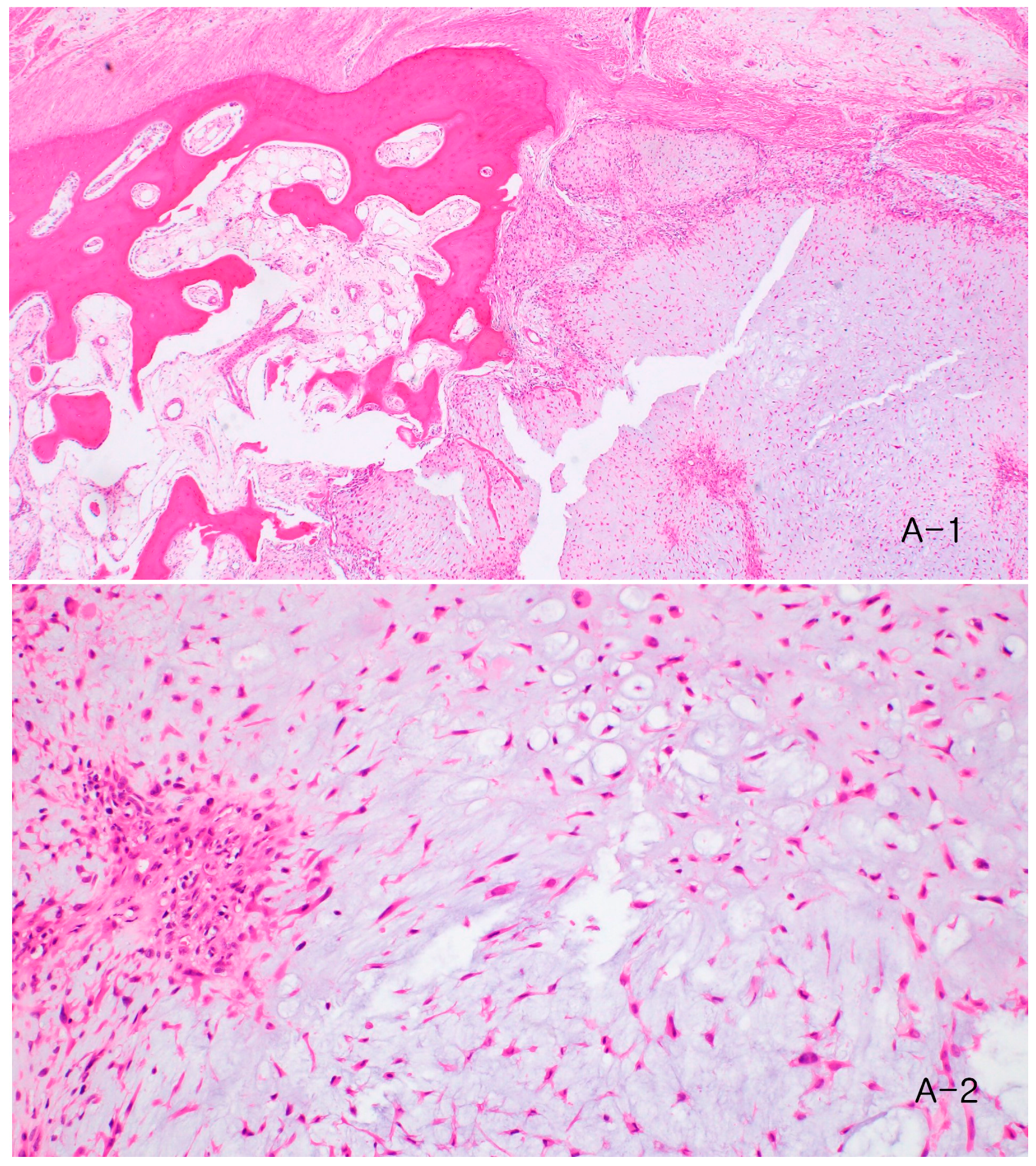 - Toland, A.M.S.; Lam, S.W.; Varma, S.; Wang, A.; Howitt, B.E.; Kunder, C.A.; Kerr, D.A.; Szuhai, K.; Bovée, J.V.M.G.; Charville, G.W. GRM1 immunohistochemistry distinguishes chondromyxoid fibroma from its histologic mimics. Am. J. Surg. Pathol. 2022, 46, 1407–1414. [Google Scholar] [CrossRef] [PubMed]