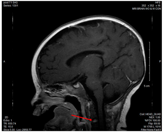 Magnetic resonance imaging (MRI) brain with and without contrast: increased T2 enhancement of the C3 vertebral body concerning for osteomyelitis.