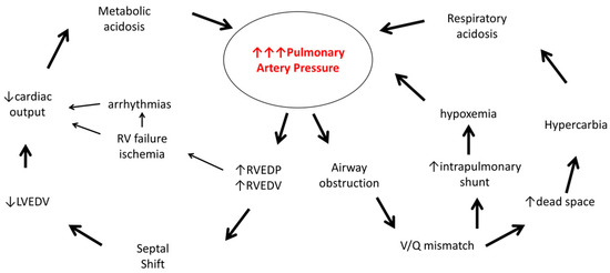 Metabolic and respiratory acidoses resulting from the above mechanisms will further worsen pulmonary vascular resistance and potentially create vicious cycles that will likely lead to deterioration and possibly even death in the absence of intervention [