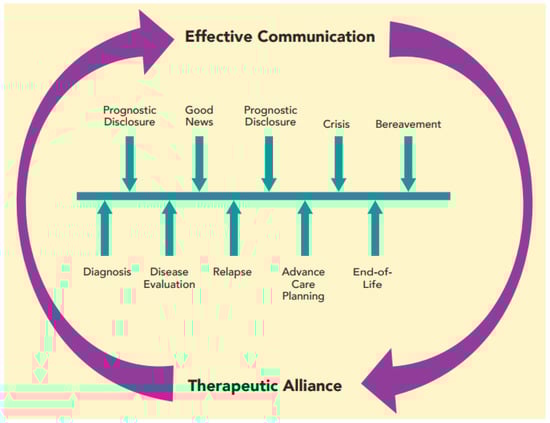 Therapeutic alliance encompasses the personal bond and shared therapeutic goals among the patient, family, and HCP [30]. Establishment of a therapeutic alliance begins at the first meeting and further develops over time. Optimal communication strengthens the therapeutic alliance, providing HCPs with necessary credibility when difficult decisions must be made.