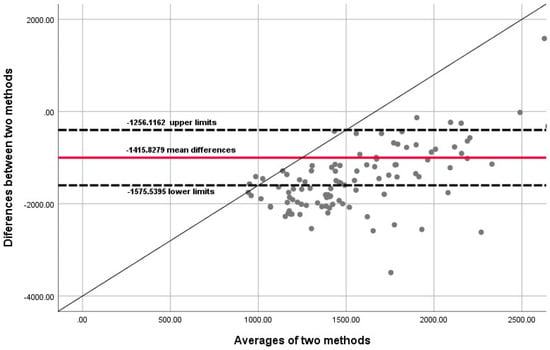 - Bland, J.M.; Altman, D.G. Measuring agreement in method comparison studies. Stat. Methods Med. Res. 1999, 8, 135–160. [Google Scholar] [CrossRef] [PubMed]