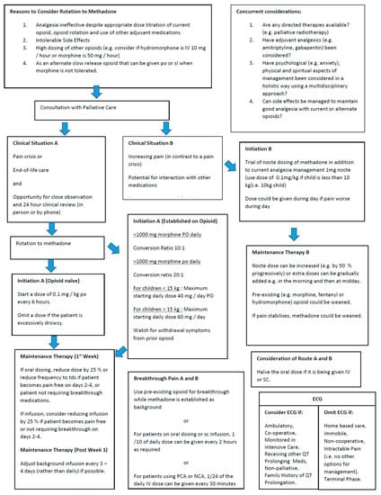 - Anghelescu, D.L.; Faughnan, L.G.; Hankins, G.M.; Ward, D.A.; Oakes, L.L. Methadone use in children and young adults at a cancer center: A retrospective study. J. Opioid Manag. 2011, 7, 353–361. [Google Scholar] [CrossRef] [PubMed]