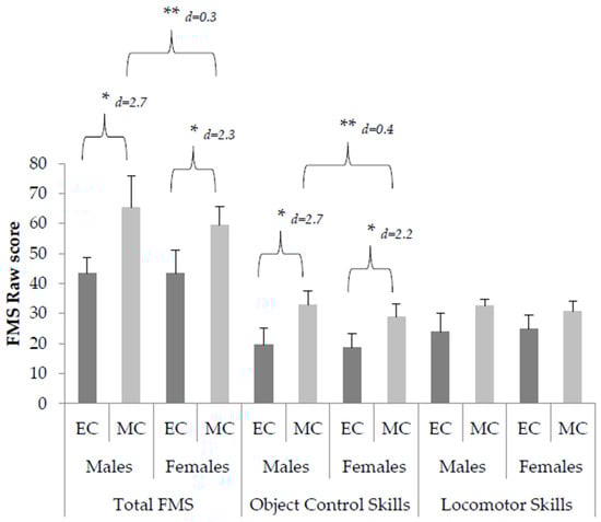 - Total raw score; a composite score was calculated by adding the locomotor and object control subtests, ranging from 0 to 80.