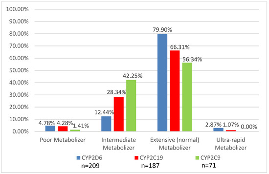 Distribution of predicted phenotypes for CYP2D6, CYP2C19, and CYP2C9 in a GOLDILOKs® Clinic.