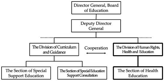 As can be seen from above figure, in Yokohama City, the Section of Health Support, Division of Human Rights, Division of Human Rights, Health, and Education, Secretariat of the Departments of Education, is in charge of school enrollment support. Although the Section of Health Education plays a major role in supporting enrollment in general schools, it cooperates with the Section of Special Support Education and the Section of Special Education Support Consultation as necessary.