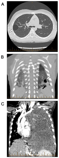 - Priest, J.R.; Williams, G.M.; Hill, D.A.; Dehner, L.P.; Jaffe, A. Pulmonary cysts in early childhood and the risk of malignancy. Pediatr. Pulmonol. 2009, 44, 14–30. [Google Scholar] [CrossRef] [PubMed]