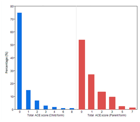 Total adverse childhood experiences (ACE) scores in children and their parents.