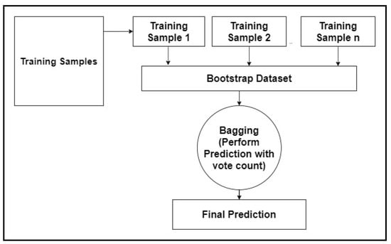 The bootstrap dataset does not select all columns to determine the root of the tree. Step 1 mentioned above is performed again until varieties of trees are built. The idea of creating multiple trees leads to an efficient performance of the random forest. Assume a new input dataset (also called the out of bag dataset) is added to all the bootstrap datasets, the decision from each bootstrap is recorded. The aggregated decision is the decision for the new input. This type of decision-making using a bootstrap dataset is called bagging [28,29].