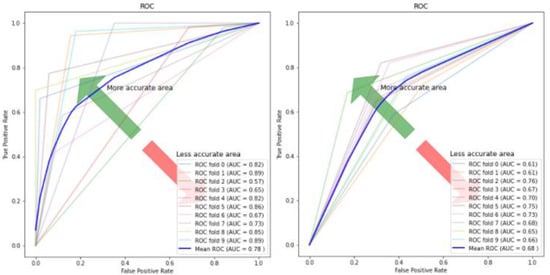 Table 3 shows the values of accuracy, sensitivity, specificity, and AUC [35]. The first value indicates the average of all the 10 k-folds, and the second value is the standard deviation. The standard deviation helps to calculate the amount of variation in a set of values [36]. A low standard deviation indicates that the values tend to be close to the mean, while a high standard deviation indicates that the values are dispersed over a broader range [37,38].