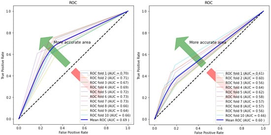 ROC curve and AUC values for autoencoder–KNN (Left) and KNN (Right).