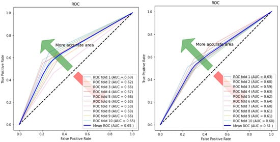ROC curve and AUC values for autoencoder–SVM (Left) and SVM (Right).