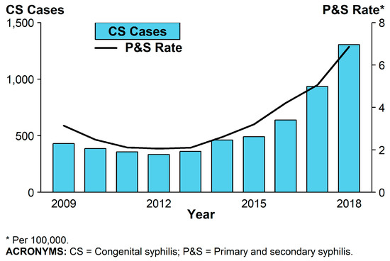 - Kimball, A.; Miele, K.; Bachmann, L.; Thorpe, P.; Weinstock, H.; Bowen, V. Missed Opportunities for Prevention of Congenital Syphilis. MMWR Morb. Mortal. Wkly. Rep. 2020, 69, 661–665. [Google Scholar] [CrossRef]