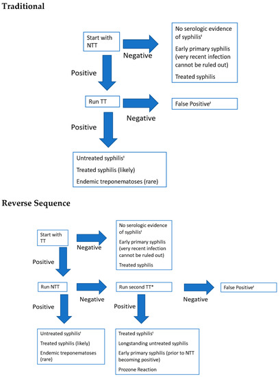 - Discordant results from reverse sequence syphilis screening--five laboratories, United States, 2006–2010. MMWR. Morb. Mortal. Wkly. Rep. 2011, 60, 133–137.