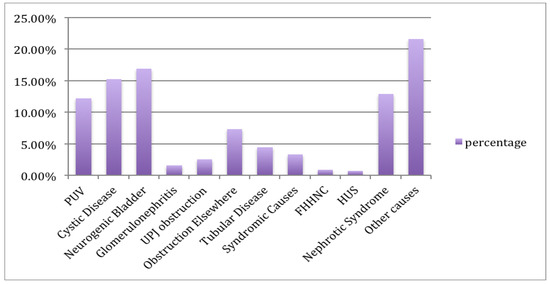 - Hamed, R.M. The spectrum of chronic renal failure among Jordanian children. J. Nephrol. 2002, 15, 130–135. [Google Scholar] [PubMed]