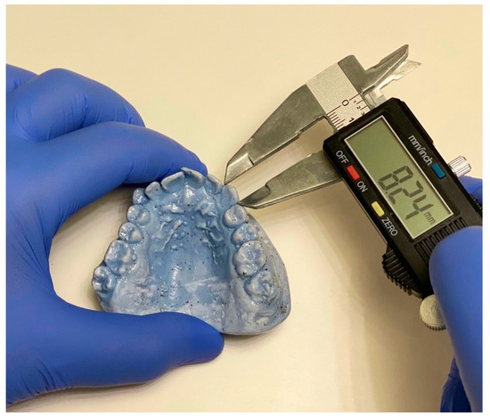 The largest mesiodistal widths of the PMMCIs and PMCs were measured using a digital caliper (Mitutoyo, Tokyo, Japan) with 0.001 mm accuracy for each study cast (Figure 1). The widths of both the right and left sides of the PMMCIs were measured, from which the width of the PMCs was determined. Intra-examiner calibration was performed on 20 study casts not included in the study, with a one-week interval between the calibrations (correlation test = 0.98).