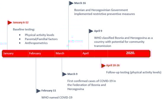 Collectively, there is evidence that the COVID-19 pandemic has negatively influenced the PAL among adolescents due to imposed measures of social-distancing and lockdown [,,,]. However, there is a lack of international data regarding the changes in PAL in adolescents, especially taking into account factors influencing PAL and COVID-19-induced changes in PAL. Finally, previous studies noted familial factors as important determinants of PAL, but the problem is understudied with regard to the COVID-19 pandemic [,]. As a result, this study aimed to evaluate the dynamics of changes in PAL among adolescents from Bosnia and Herzegovina (B&H) and to evaluate sociodemographic, and parental/familial factors which may influence PAL before and during the COVID-19 pandemic and imposed lockdown.