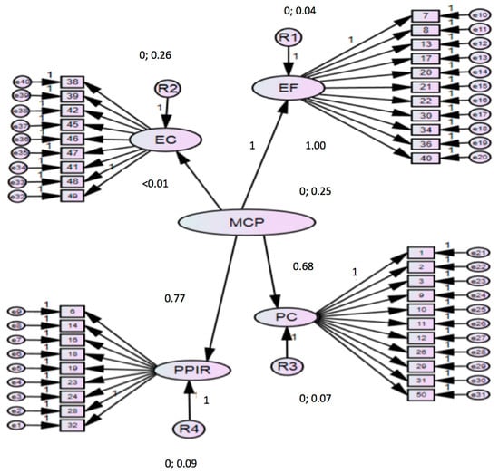 The construct validity was verified using a CFA with the factor model proposed by the authors of the original questionnaire conforming to the data that we have obtained in the Spanish population (Figure 1). The CFA with FACTOR Software confirmed the four-factor structure for the MCP (Table 2).