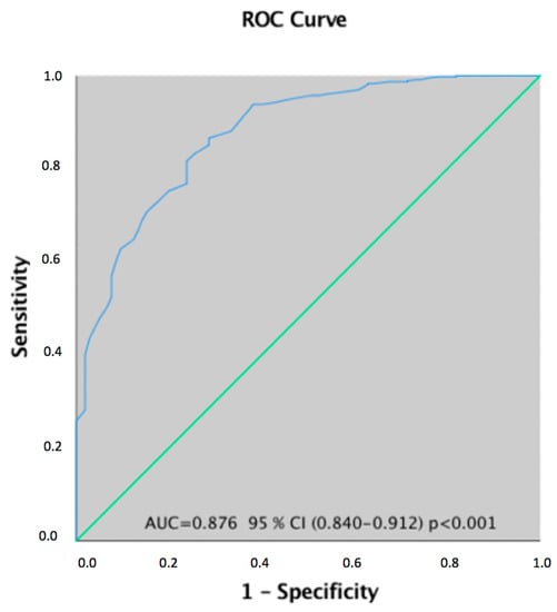 Table 5 shows the mean scores obtained by neurotypical children and by those with NDD in MCP and in each of its four factors. There were significant differences between neurotypical children and children with NDD with lower scores in the first group (Table 5). Likewise, Figure 2 shows the ROC curve for the predictive level of MCP in the children with NDD. The area under the curve was 0.876 (CI 95%, 0.840–0.912).