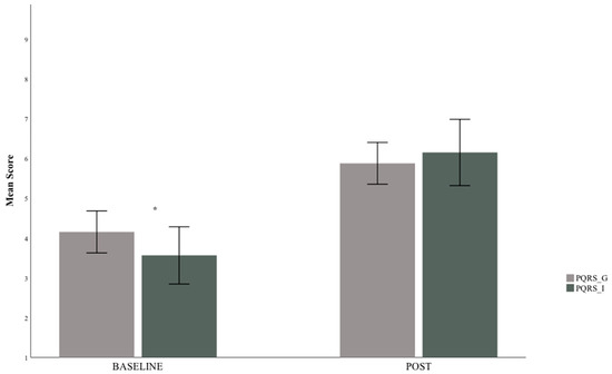 Comparing means at Baseline and at Post-Intervention. * indicates significant difference. PQRS-G = Performance Quality Rating Scale—Generic; PQRS- I: Performance Quality Rating Scale—Individualised.