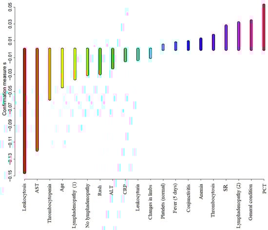 Half of the decision rules contained inflammatory markers (CRP and ESR). CRP is produced by hepatocytes in response to inflammatory processes. However, its production is not only activated by an infectious agent but also a non-infectious one [17]. Therefore, this is a non-specific marker. CRP was initially used to differentiate infectious diseases (viral versus bacterial etiology of disease), but over time it has been noticed that this protein is useful in estimating the prognosis of inflammatory process (not necessarily infectious diseases), including KD [18,19,20,21,22].