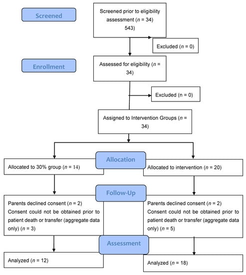 Despite advances in perinatal and neonatal care, neonates remain susceptible to oxidative and deleterious effects from hyperoxia and hypoxia [,,]. There is a need for large, multi-center international trials of sufficient sample size, using an alternate recruitment strategy, powered to look at both safety outcomes such as mortality and long-term outcomes such as neurodevelopment. In preparation for such a trial, to ensure that we can achieve a difference in supplied oxygen between the two intervention groups and that we can obtain an acceptable rate of enrolment, we performed an unblinded prospective, single-center feasibility study of 30% vs. 60% starting oxygen concentration at birth in extremely preterm infants to determine the feasibility of a multi-centered cluster-randomized crossover design using deferred consent.