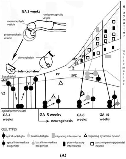 - Adnani, L.; Han, S.; Li, S.; Mattar, P.; Schuurmans, C. Mechanisms of Cortical Differentiation. Int. Rev. Cell Mol. Biol. 2018, 336, 223–320. [Google Scholar] [CrossRef]