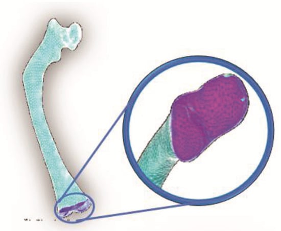 OI children’s life is full of events that cause a fracture on their bones. The fracture usually happens with minimal or null trauma, but the injury could be equivalent to a fall from a height of one foot or less []. The OI affected exhibit fractures in the hip, clavicle, vertebrae, ribs, upper limbs, and lower limbs, the last of which being the area with the highest incidence of fracture, especially in long bones []. The femur fractures represent the third location of fractures in children []. The femur diaphysis fractures are frequent in males according to age, 11% affects children under two years of age, 21% between 3 and 5 years, 33% between 6 and 12 years, and 35% between 13 and 18 years [,]. The fracture may be incomplete, manifested by a transverse radiolucent line in the lateral cortex []. Some cases related to atypical femur fractures reported that the subtrochanteric area corresponds mainly to the spirals or longitudinal and transverse fractures [].
