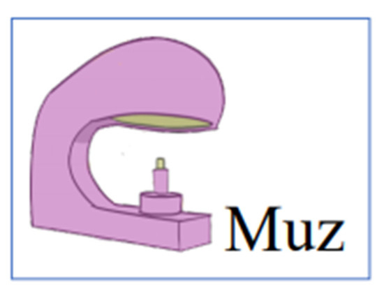 A group of nine pseudowords was selected from a list of test items MEMOFON [36]. Of these, two were for training purposes (muz and norba). The pseudowords were differentiated by their complexity both in number and in the type of component syllables. Therefore, two monosyllabic pseudowords were selected, one phonologically simpler with a consonant + vowel + consonant pattern (CVC) (sel) and another more complex one with a closed syllable (tron). Two pseudowords with two syllables were selected, one more simple (sina) and another more complex, since it contains an inverse syllable (pamul). Another three pseudowords of three syllables were also selected, two easier (bésica and gapata) and another more phonologically complex one (calcemar). Each pseudoword was presented in association with a drawing of the pseudo-object, an invented object. The pseudo-objects were designed specifically for the experiment and were randomly associated with the pseudowords. In Figure 1, an example of a pseudoword associated with a pseudo-object can be seen.