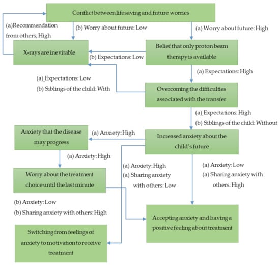 Despite this situation, few studies have focused on the mothers of children receiving proton beam therapy. In particular, no study has examined the mother’s psychological state, including the decision-making process about how mothers choose proton beam therapy and, subsequently, how they felt about the treatment. Their psychological situation influences their attitudes toward subsequent treatment [21]. The decision-making process and how these changes influence their psychological situations need to be clarified for the nursing care of the mother. Therefore, this study attempted to clarify what mothers experience in the course of their decision-making process to start proton beam therapy.