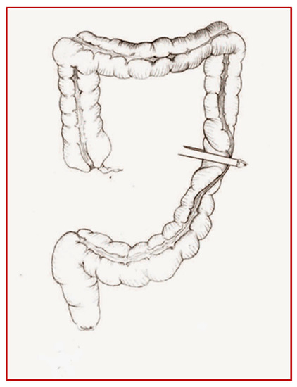 Cologne pouch technique: section of the left colon.