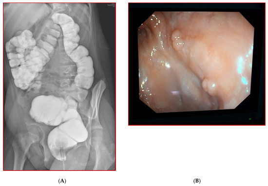 Barium enema (A) and endoscopy (B) examinations during follow after Cologne pouch intervention.