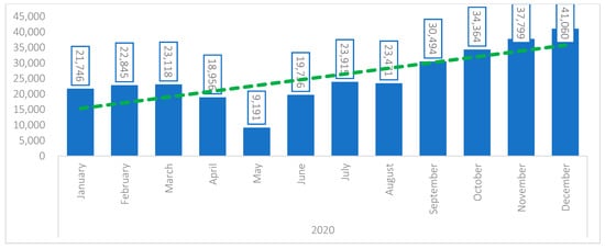 The overall strategic adaptation includes a monitoring system, which is regularly revised and adapted to respond to the outbreak and collect, manage, analyze, and report on key indicators to track challenges and progress, plan response, and prioritize actions to improve service delivery [15]. Data up to December 2020 have documented the proportions and trend of indicators tracked through NSS, including underweight (weight for age), acute malnutrition using MUAC, exclusive breastfeeding and oedema [15]. Figure 3 shows the number of U5C children who were screened within the NSS between January and December 2020.