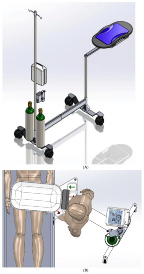 Our research team had previously performed simulations and debriefings of childbirth focusing on DCC while resuscitating the infant [14]. Based on this work, the team designed and prototyped a cart to facilitate DCC while allowing for the possibility of simultaneous respiratory support (Figure 1). Iterations of the prototype occurred based on further repeated simulations involving a multidisciplinary team at the Stanford Medicine Center for Advanced Pediatric and Perinatal Education (CAPE, http://cape.stanford.edu, accessed on 28 April 2021). The development of the DCCC began with simple concept sketches, and subsequently evolved to increasingly more complex functional models using SolidWorks Premium 2021 computer aided design (CAD) software. These models focused on planning the mechanical structure, mechanisms, and electrical features of the cart.